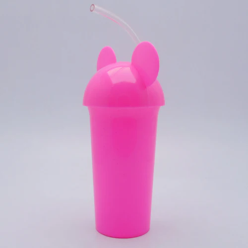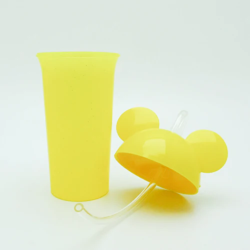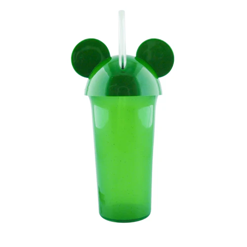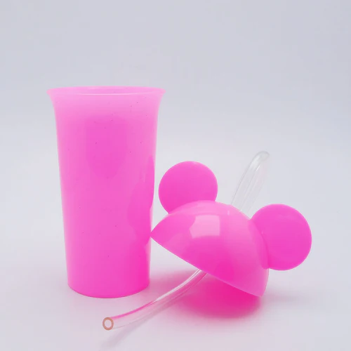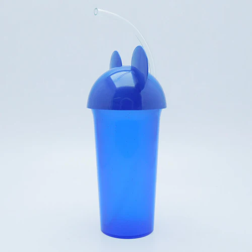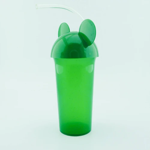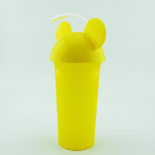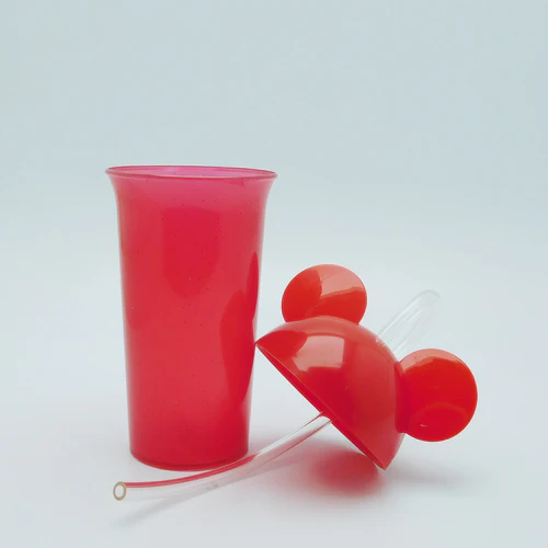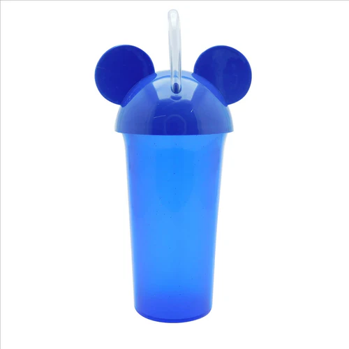 Vaso de plástico escarchado con tapa y pitillo flexible.