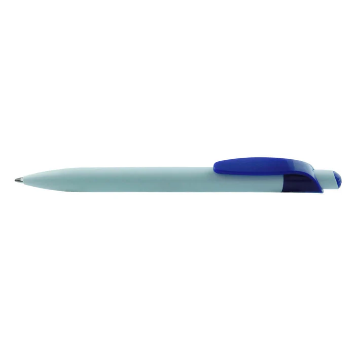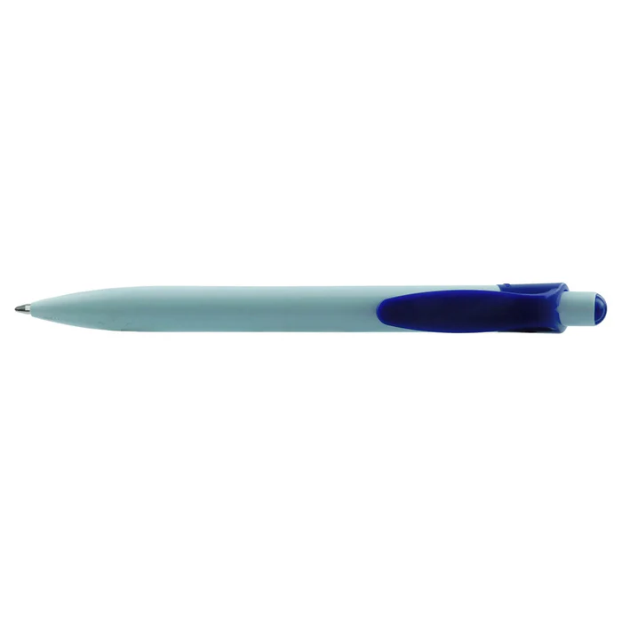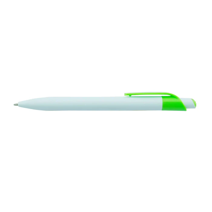 Esfero plástico brillante blanco clip y punta de sistema retráctil de color. Disponible en color: