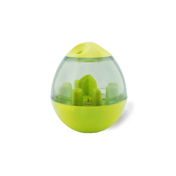 Cada vez que rueda arroja pepitas, trae tapa superior y dispensador con varios tamaños para abrir y cerrar el paso de las pepitas, contrapeso que no permite que se volqué.