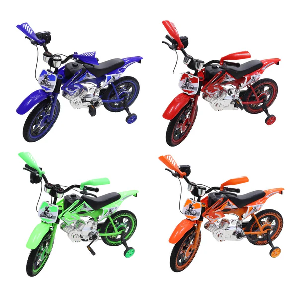 Bicicleta para niño estilo motocicleta con resonador de moto en el manubrio.