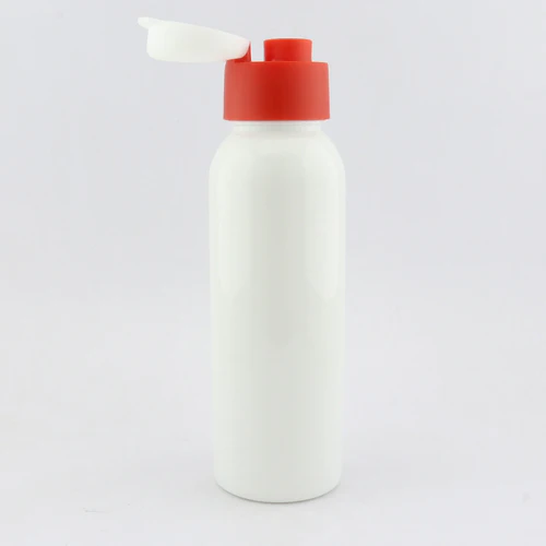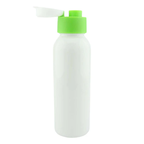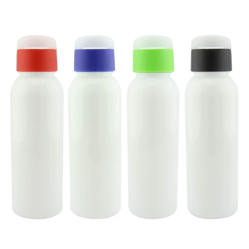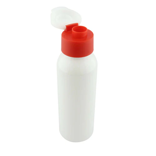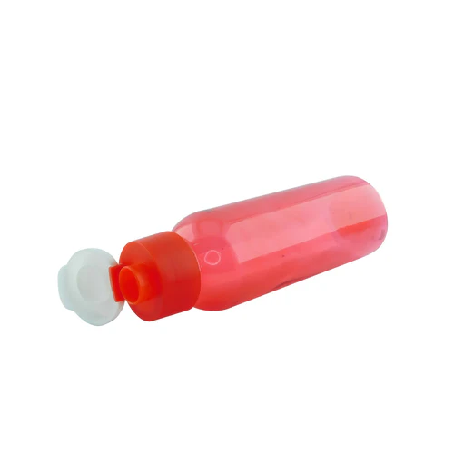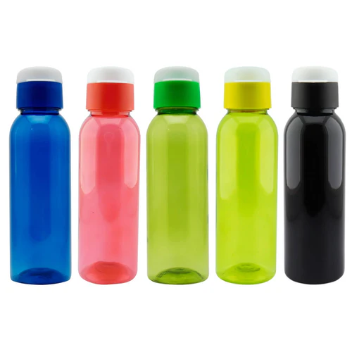 Botella plástica con doble tapa, sólo para líquidos fríos. Disponible en color: