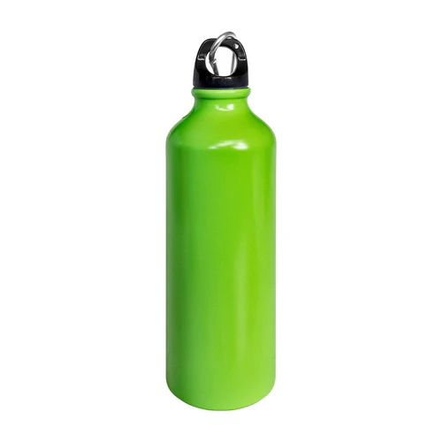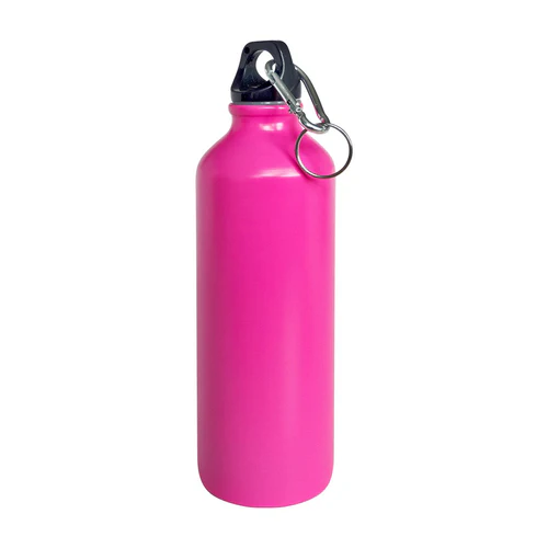 Botilito metálico con colores neón. tapa hermética con mosquetón.