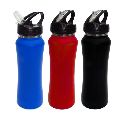 Botella metálica con tapa rosca y pitillo para bebidas frías