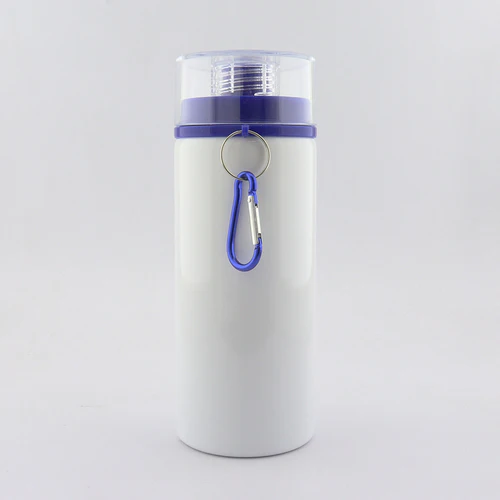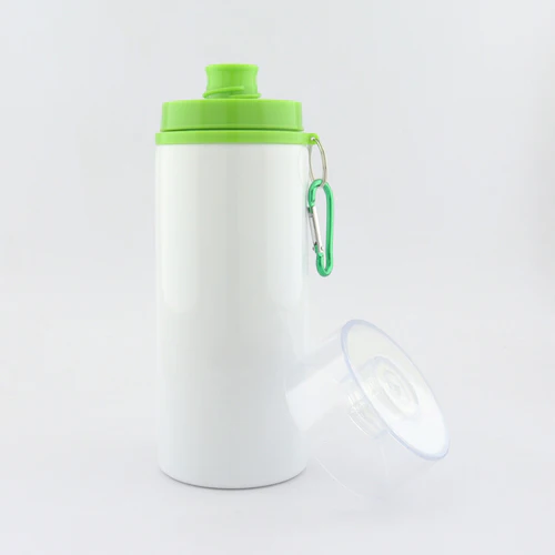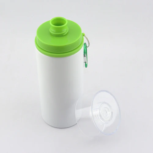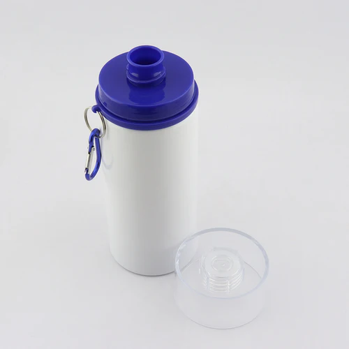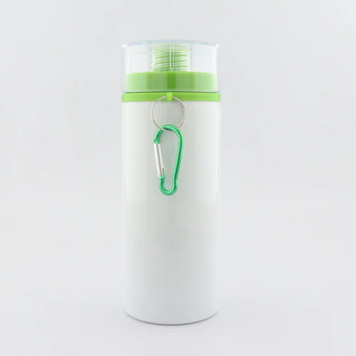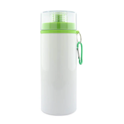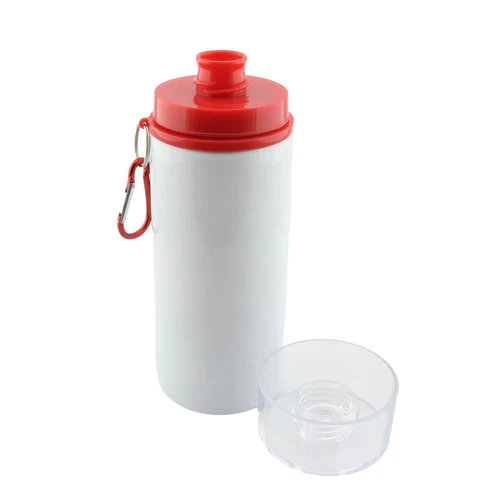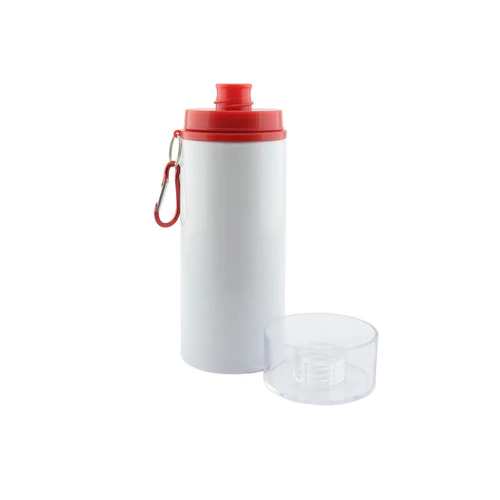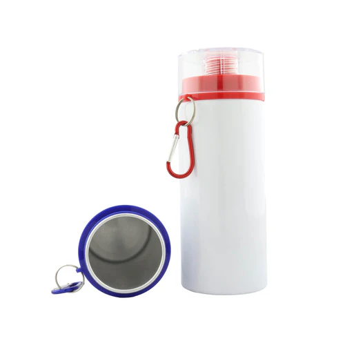 Botilito en aluminio para sublimación con tapa transparente de rosca y broche para colgar. Disponible en color: