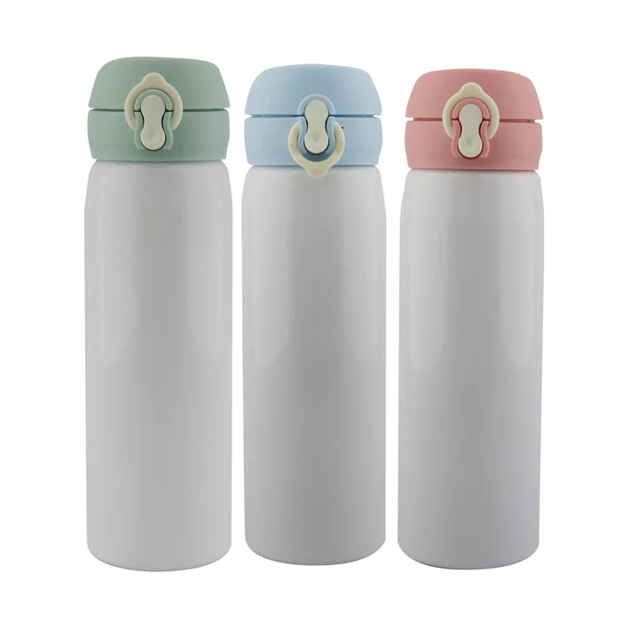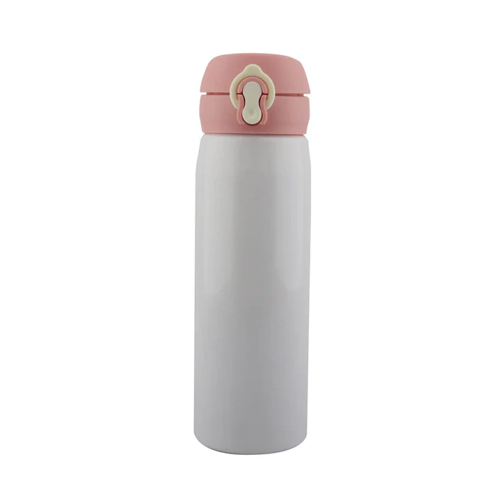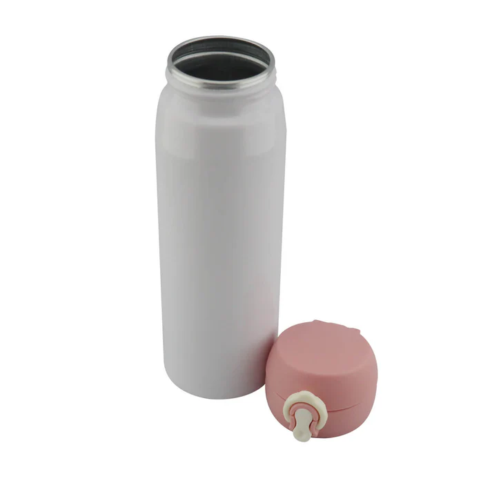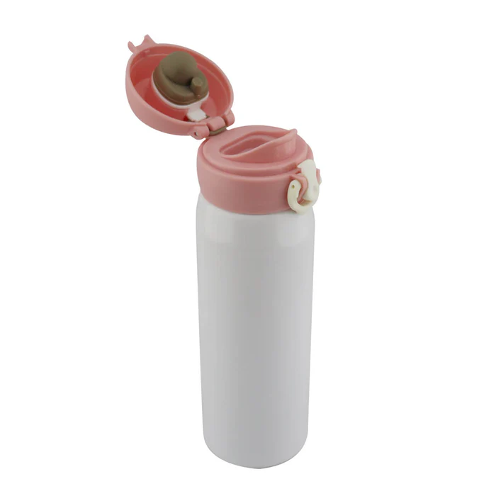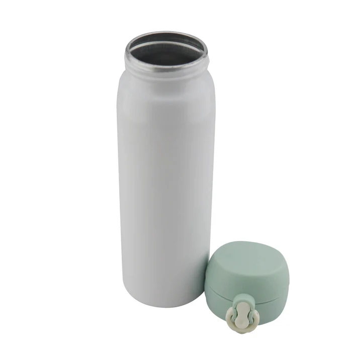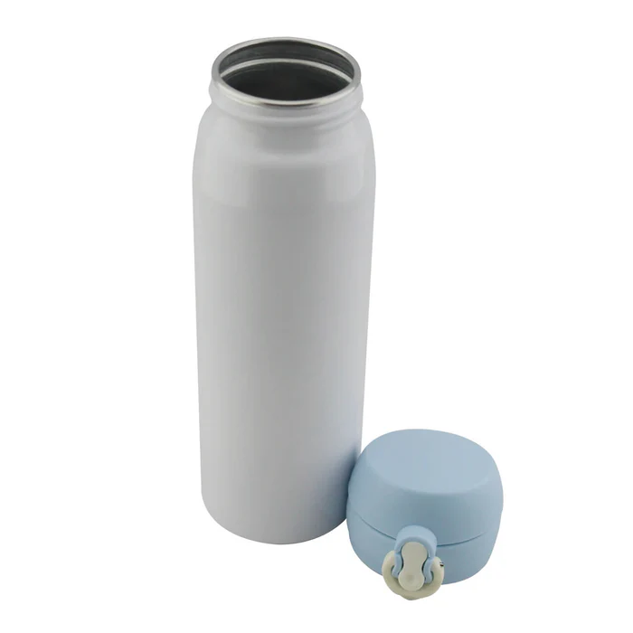 Botilito blanco para sublimación con cerradura en la tapa. Disponible en color: