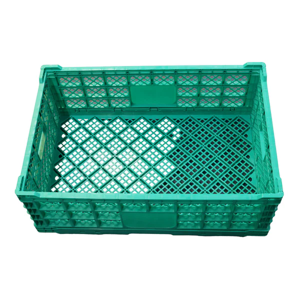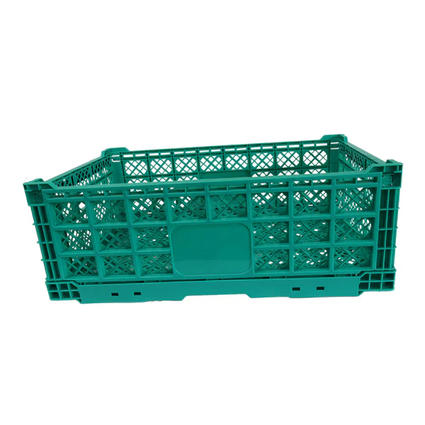 Canasta plástica plegable, resistente y práctica para almacenar y organizar productos. Su diseño abatible permite ahorrar espacio cuando no está en uso. Ideal para hogar, oficina o negocio.