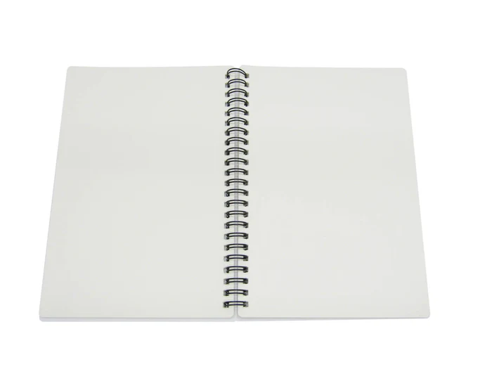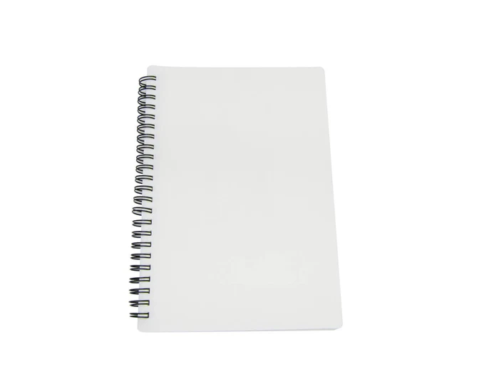 Portada elaborada en plástico anillado, 80 hojas blancas, NO incluye esfero.