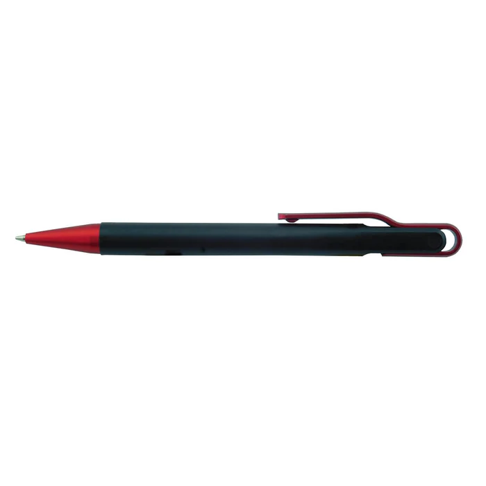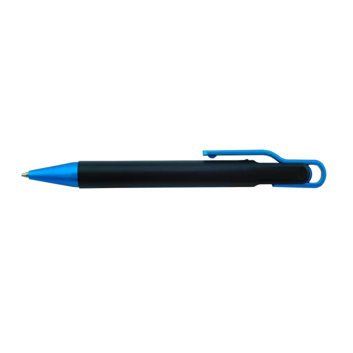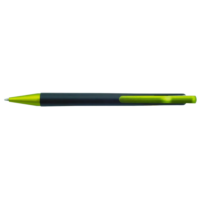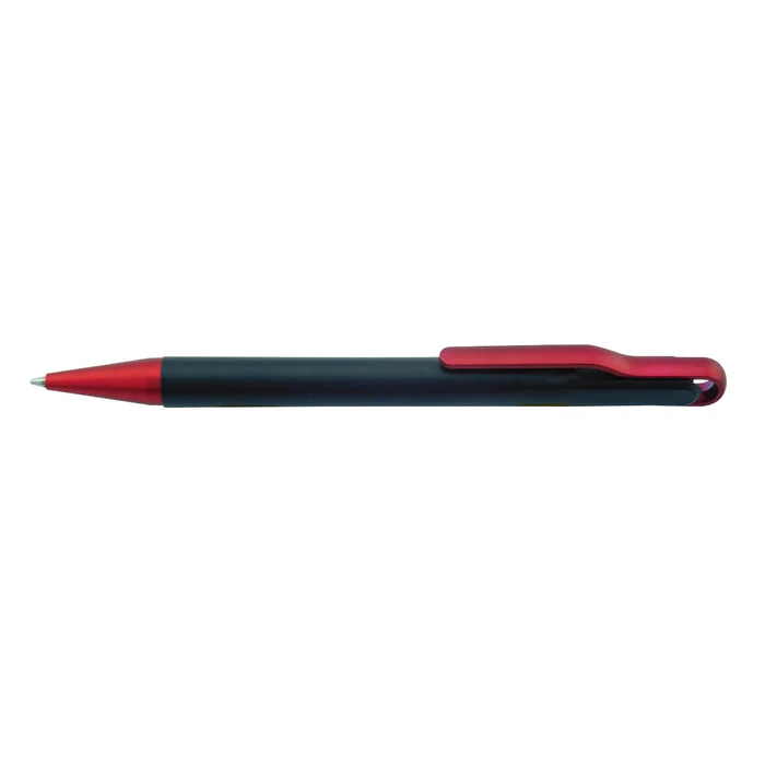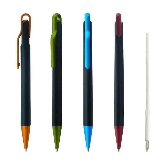 Esfero plástico cuerpo negro mate, punta y clip de sistema retráctil de color metalizado. Disponible en color: