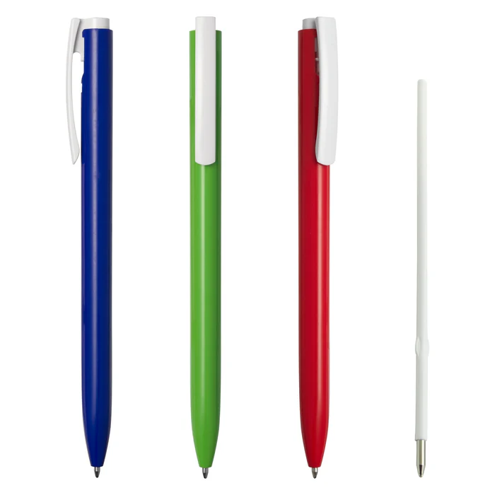 Esfero plástico brillante, clip blanco. Disponible en color: