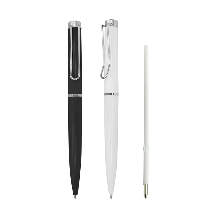 Esfero plástico giratorio con clip cromado.