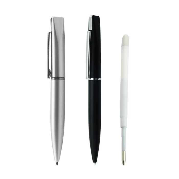 Esfero Metálico con clip cromado. Diseño elegante. Cuerpo superior de plástico  Cuerpo inferior de metal. Impresión metálica en ambos cuerpos. Disponible en color: