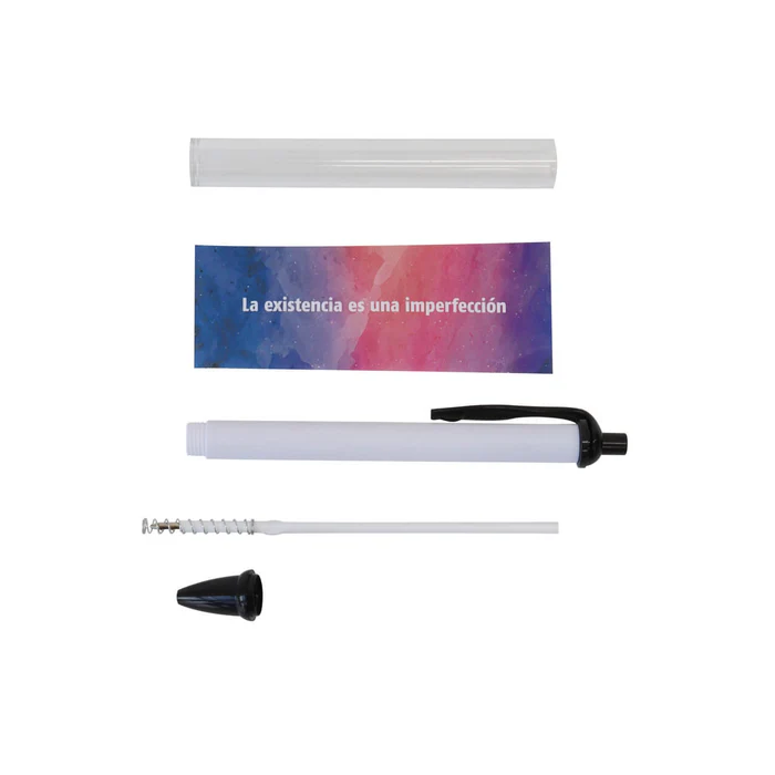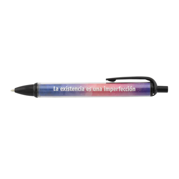 Esfero plástico para etiqueta personalizada, clip. accesorio y punta color negro.