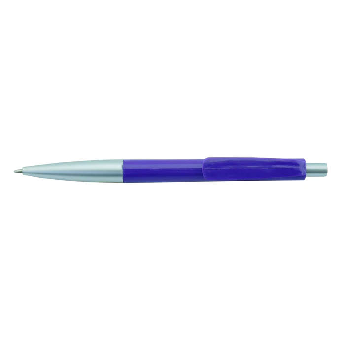 Esfero plástico brillante con sistema retráctil, clip y punta con acabado cromado. Disponible en color: