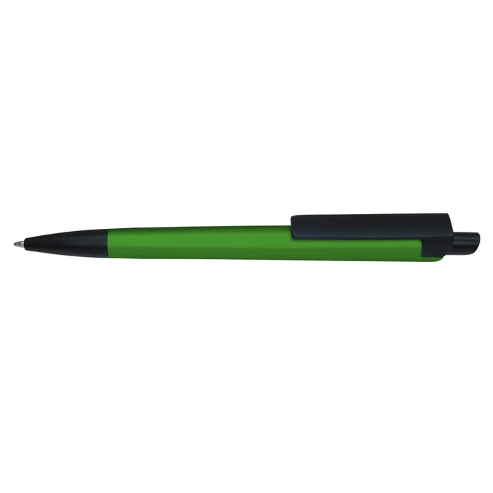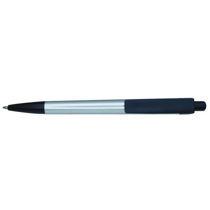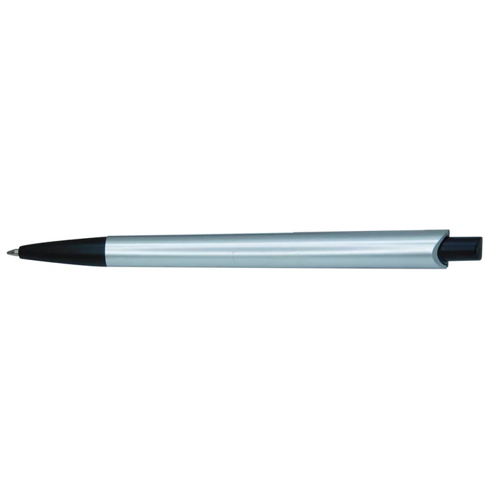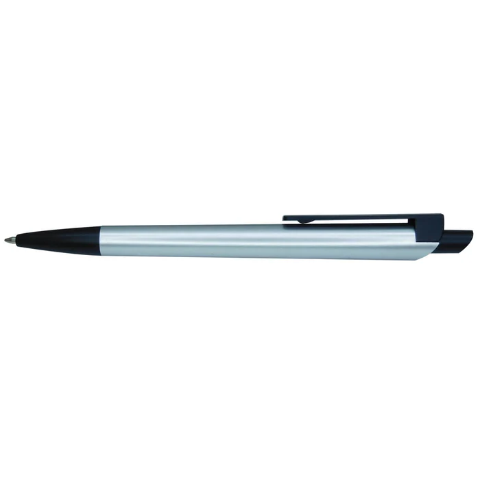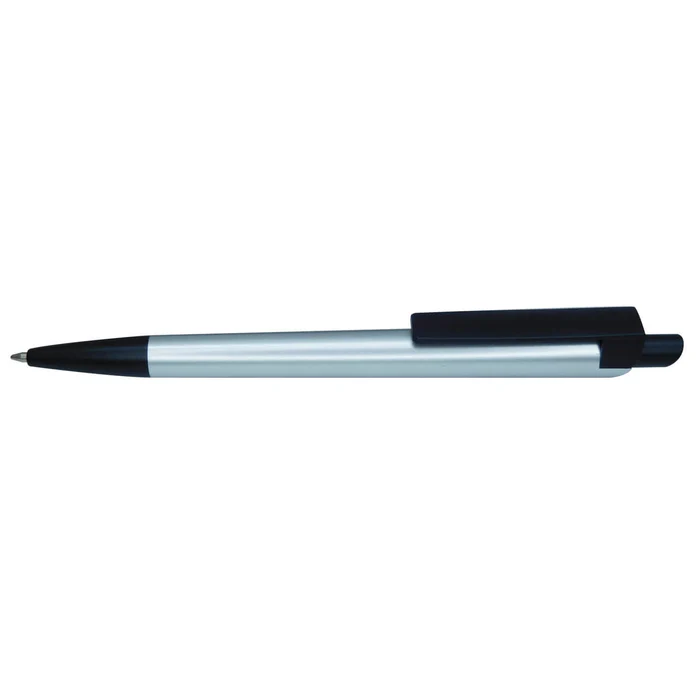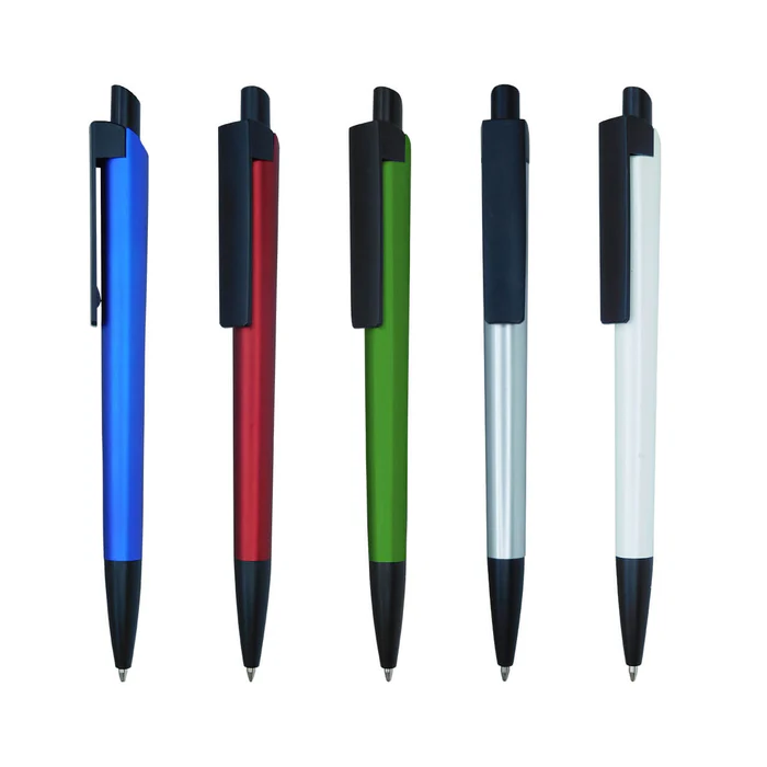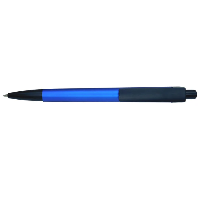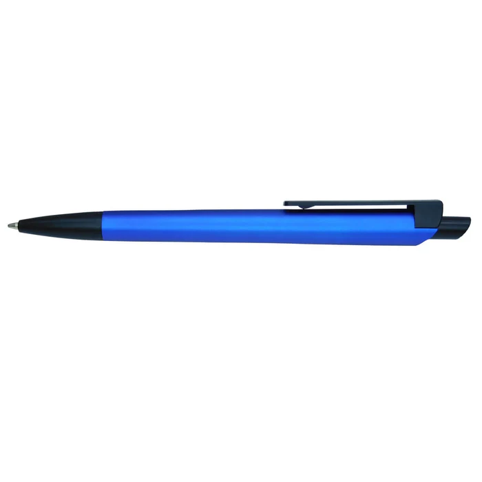 Esfero plástico color metalizado, retráctil con clip y  punta color negro.