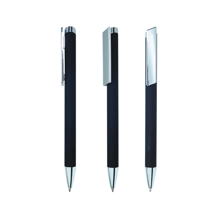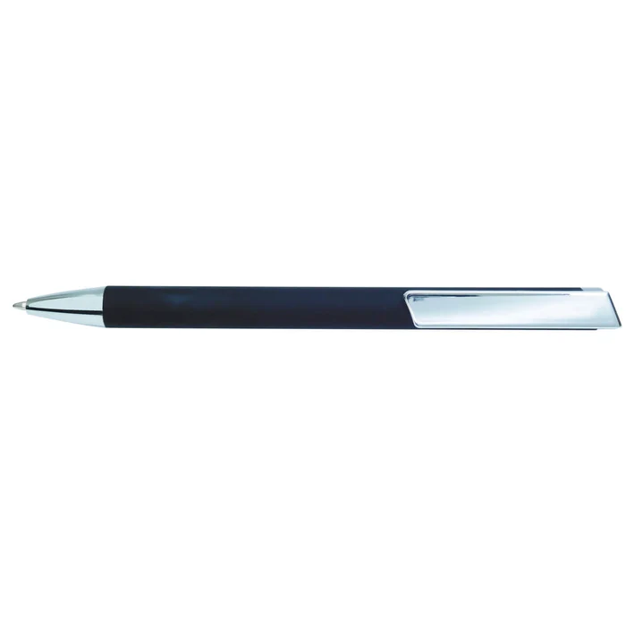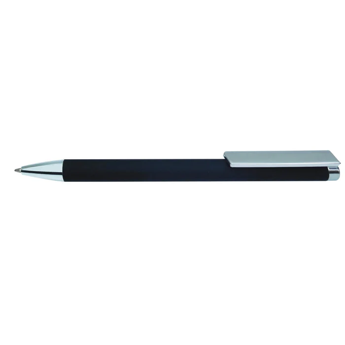 Esfero metálico con textura suave, retráctil punta y clip cromado.