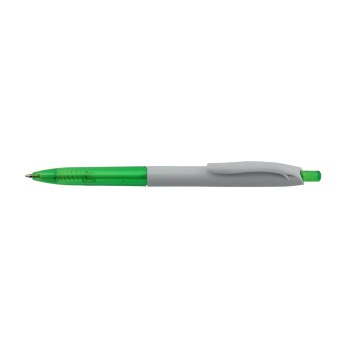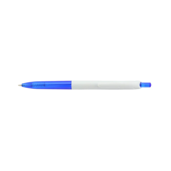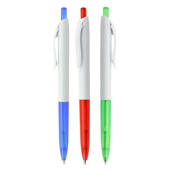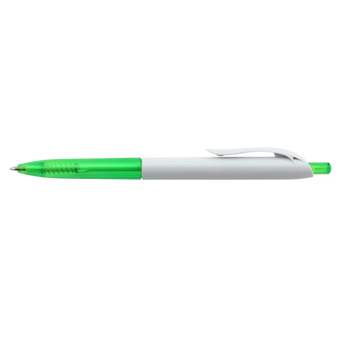 Esfero plástico con color brillante, sujetador y parte superior de color transparente, cuerpo blanco. Disponible en color: