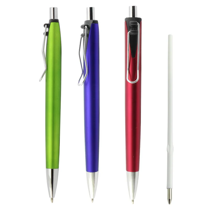 Cuerpo plástico con terminado metalizado, clip y puntas cromadas.