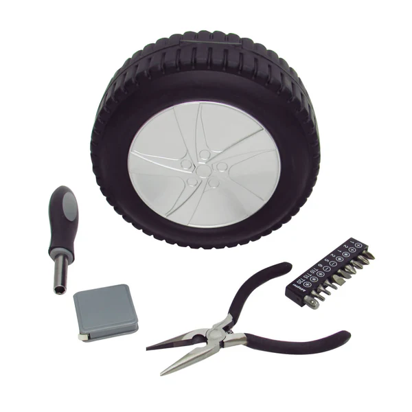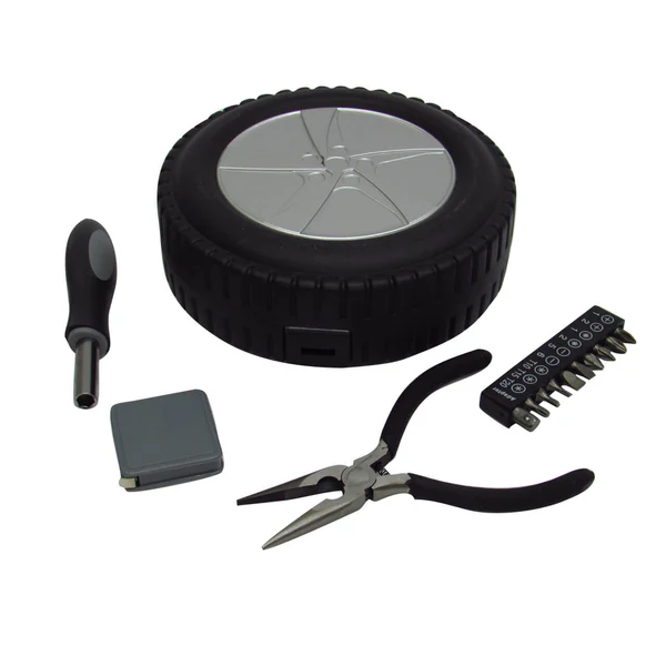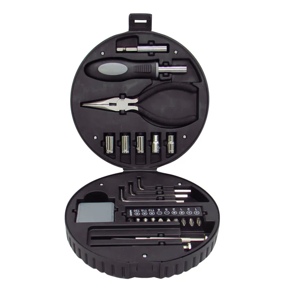 Juego de herramientas destornilladores, llaves bristol, copas, rache, pinzas y metro.