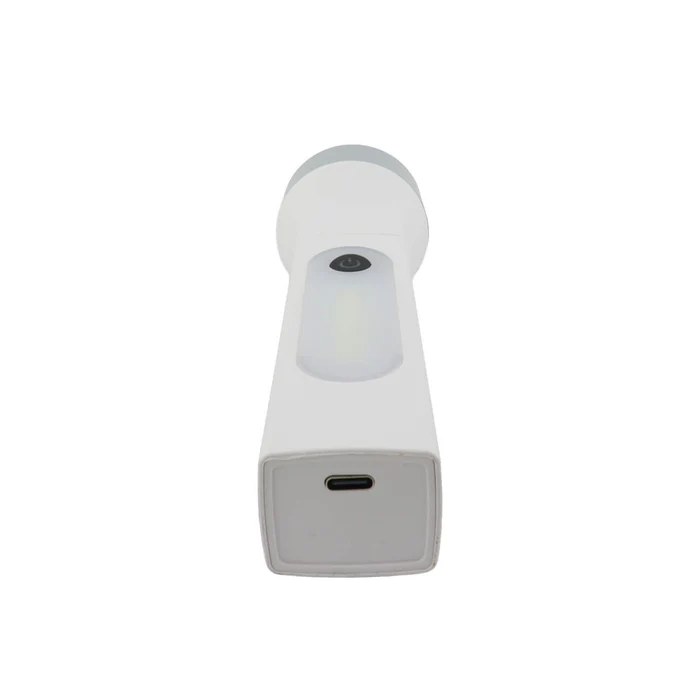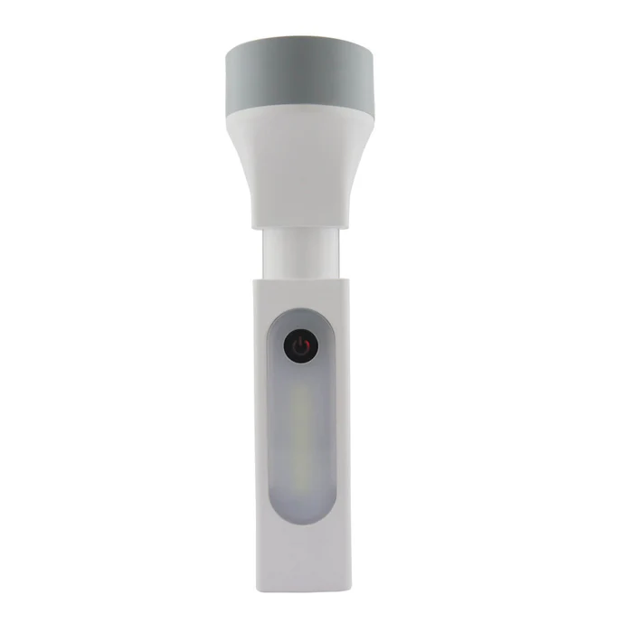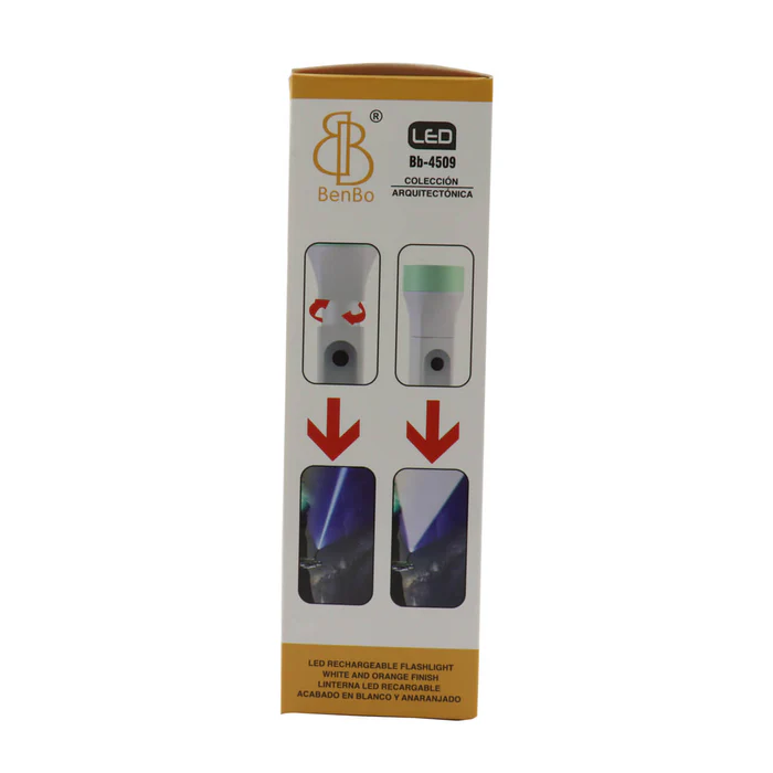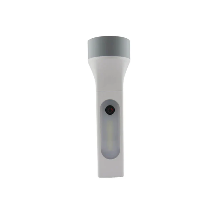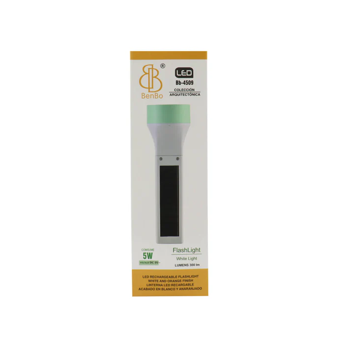 Linterna recargable con diseño práctico y cuerpo ligero, equipada con un potente haz de luz y botón frontal de encendido. Incluye puerto de carga integrado y modos de iluminación ideales para uso en el hogar, oficina o actividades al aire libre. Su formato ergonómico facilita el agarre y la hace perfecta para emergencias o uso diario.