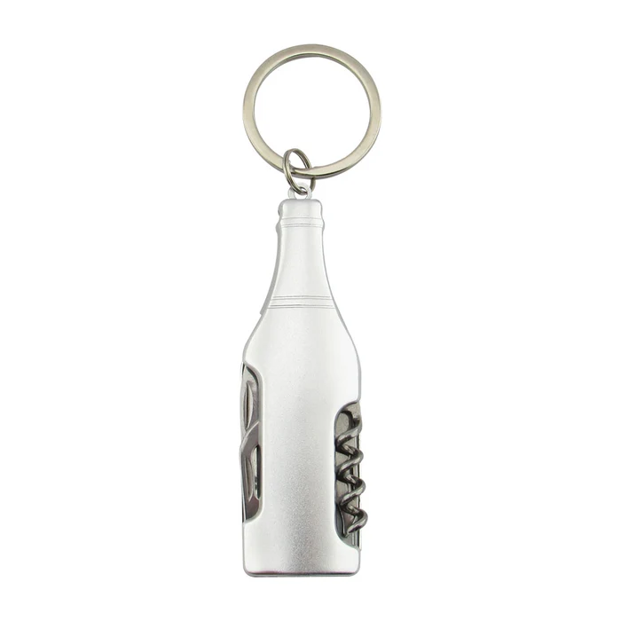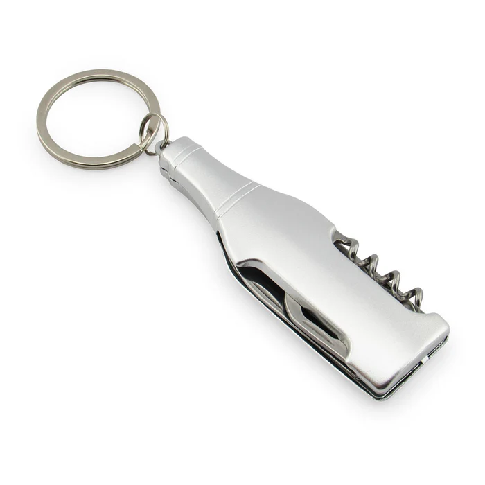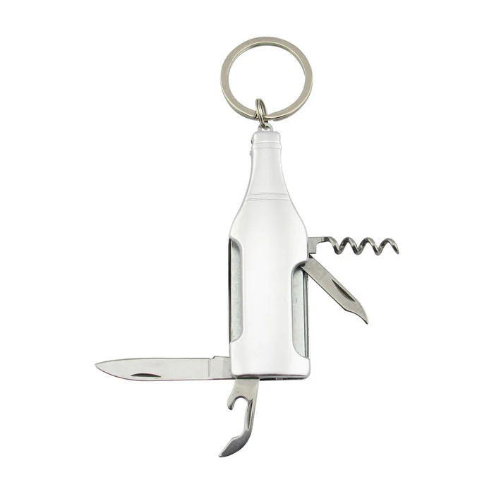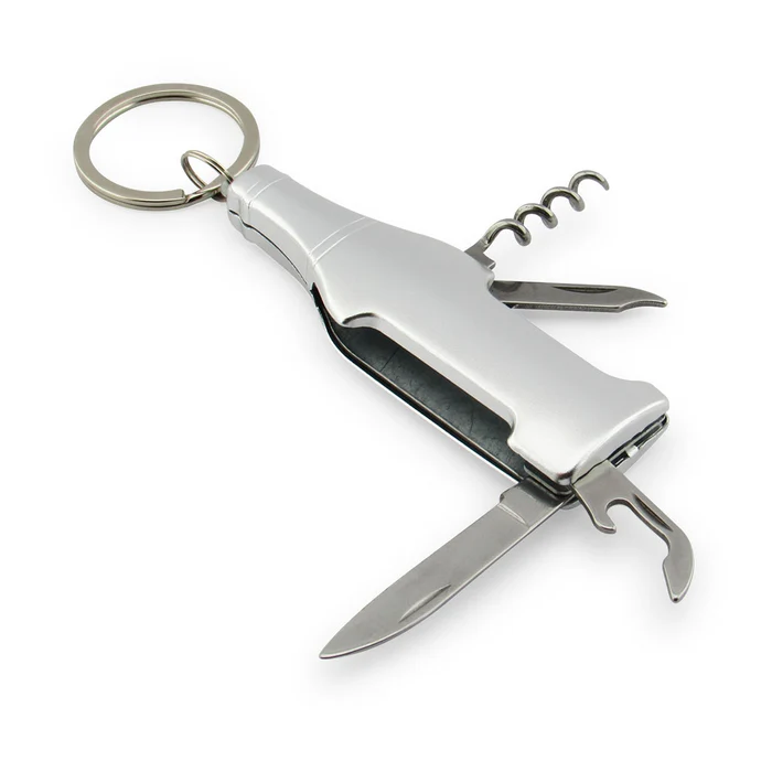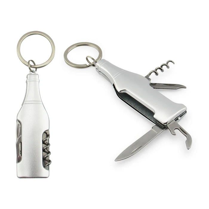Llavero tipo suizo en aluminio con 4 herramientas para distintos modos de uso.