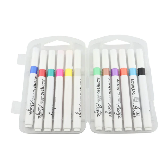 Marcadores acrílicos de 12 Unidades en su empaque.