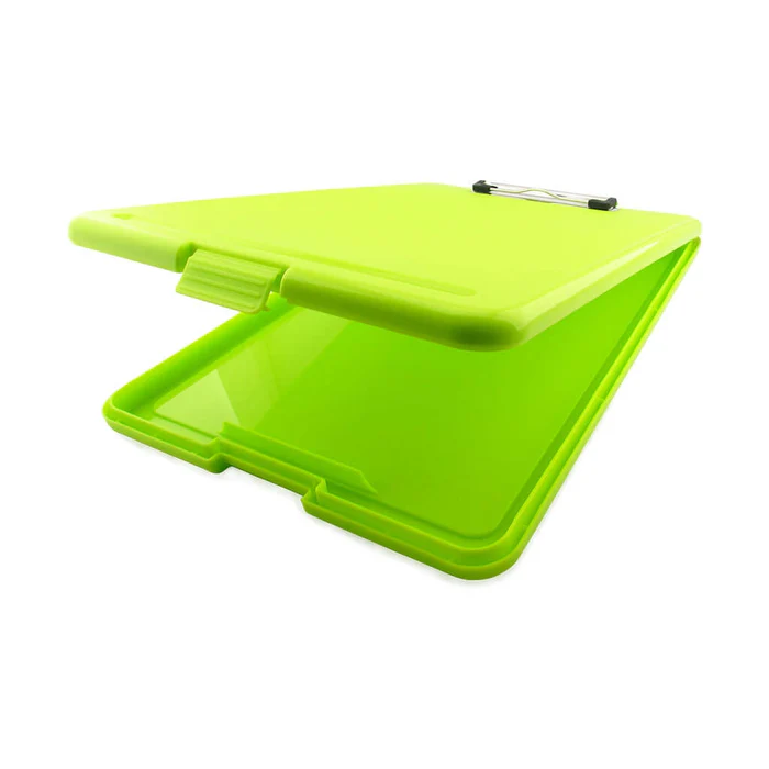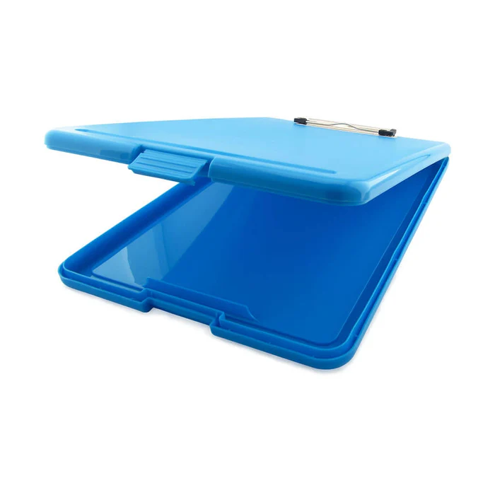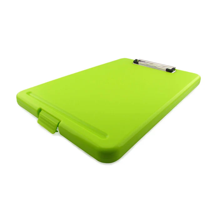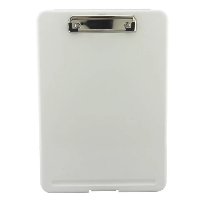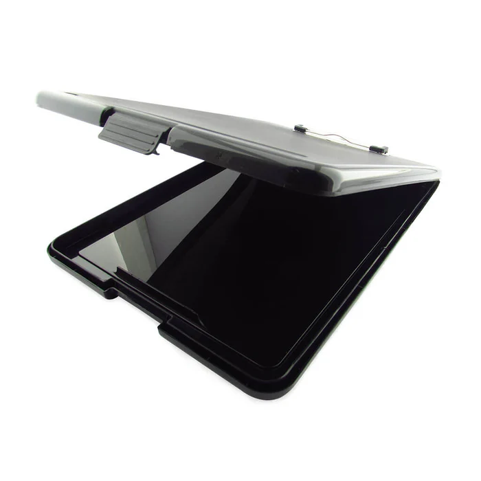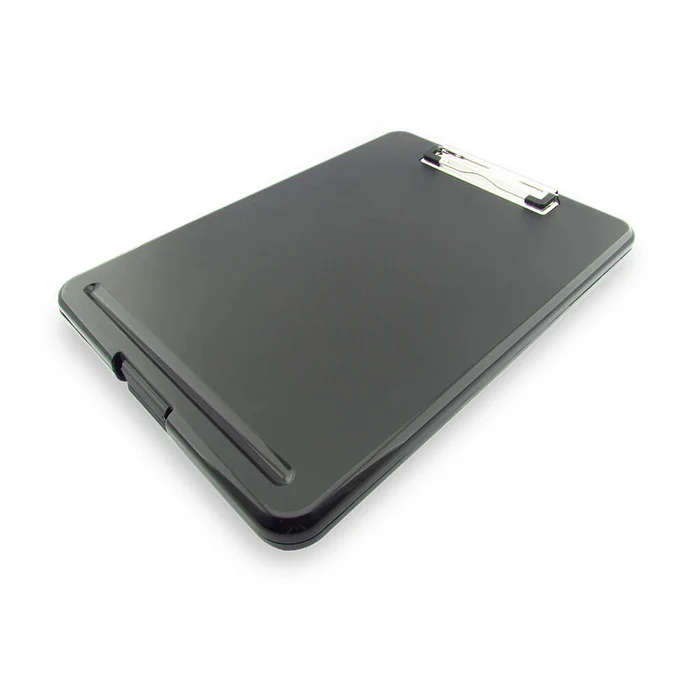 Tabla porta-papeles con clip metálico, compartimento para guardar papeles tipo carta.