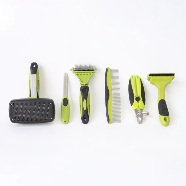 Kit de aseo para perros juego de cepillos 6 en 1, incluye maletín para guardar las herramientas de aseo con almacenamiento conveniente y fácil de llevar.