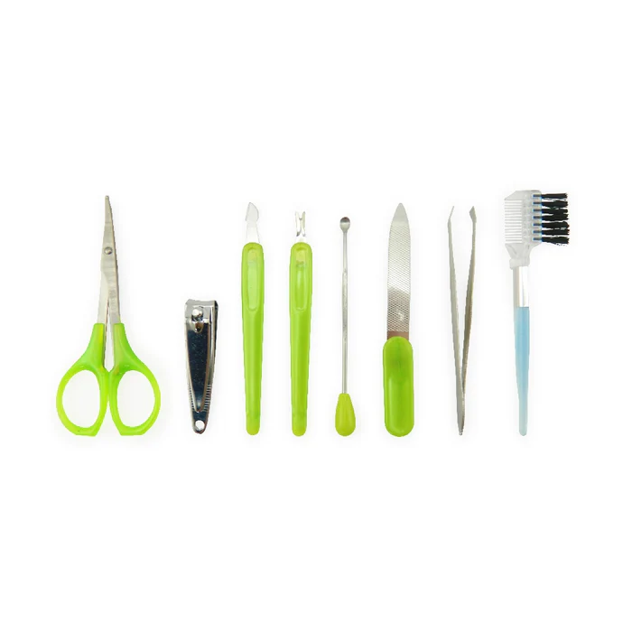 Utensilios para el cuidado de las uñas con estuche en forma de manzana.
