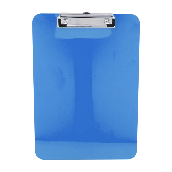 Portapapeles plástico con clip metálico, para hojas de tamaño carta.