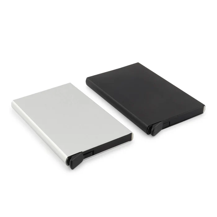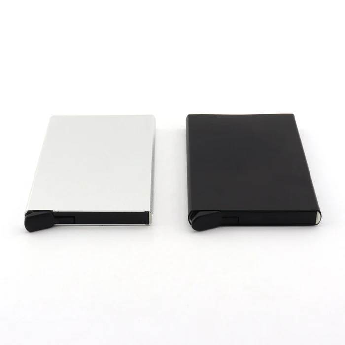 Billetera delgada de aluminio con soporte de metal para tarjetas de identificación, las tarjetas se deslizan gradualmente hacia afuera y son fácilmente accesibles, acabado agradable de alta calidad.
