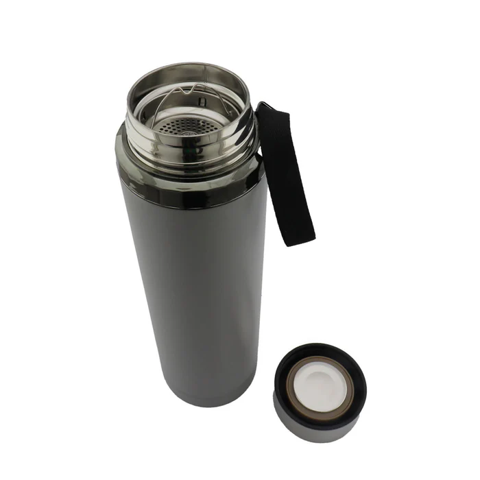 Termo de gran capacidad con diseño metálico y acabado mate, equipado con tapa roscada y asa lateral para facilitar el transporte. Su formato alto y resistente lo hace ideal para llevar bebidas durante actividades diarias, viajes o jornadas largas. Disponible en color: